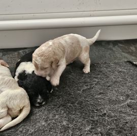 Maria from Poppy's Doodles is amazing to work with in the process of selecting and receiving your new puppy. She was quick to respond and answered all my questions in a timely manner. The payment process was super easy as well. We had our little furbaby in no time. She had first shots all taken care of and paperwork ready when we got there. She genuinely cares about the puppies she breeds and will check in on them from time to time to make sure everything is going well. I would recommend Maria to all my family and friends.