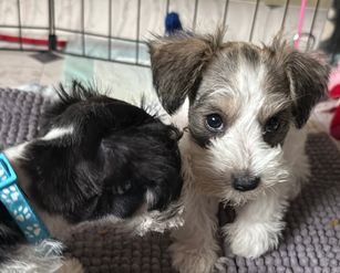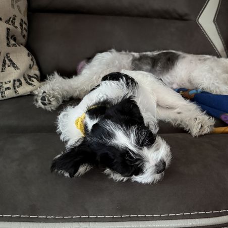 Our beautiful black and white Parti girl is a CKC registered Miniature Schnauzer with a playful, energetic spirit. She loves to stay active, whether it’s running in the yard, playing with toys, or joining in on family fun. Her lively personality is balanced with a sweet, affectionate nature, making her a wonderful companion both at playtime and cuddle time. She brings joy and brightness to every day, and her puppies are sure to inherit her loving temperament and zest for life.