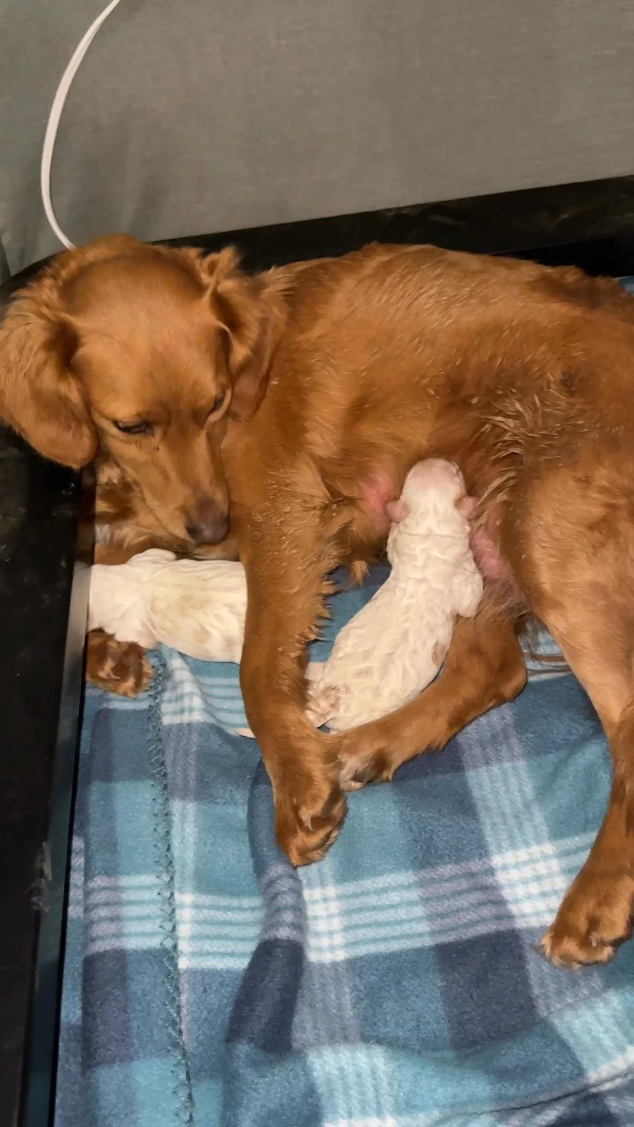 First, the quick scoop: Darla had just two beautiful little boys - healthy, strong, but not the big litter we’d all been hoping for! Both pups are white with red spots like their dad Wiley (and adorable, if I do say so myself). Here’s what you need to know: 1️⃣ Availability & Deposits: We will have at least one puppy available from this litter, possibly both, but we may keep one for our program depending on how they mature. No deposits will be accepted until the boys are at least two weeks old, so we can make sure everyone is thriving. At that time, we’ll accept ONE deposit and then reevaluate at 6 weeks to see if the second pup will also be available. 2️⃣ Coat & Hypoallergenic Info: These boys may or may not be hypoallergenic - it all depends on how their genetics play out as they grow. If you need a guaranteed hypoallergenic pup, we are breeding Wiley to Fiona this week. That litter will be 90% poodle, 10% Cavalier, all furnished, and fully hypoallergenic. 3️⃣ Size & Personality: Darla’s pups should mature in the 15-25 lb range, probably on the larger end. They’re expected to be moderately active, with a good off-switch, and more toy-focused than food-focused - perfect for families wanting a sturdy, playful companion. 4️⃣ “Tiny Darla” Hope Isn’t Lost: We absolutely plan to pair Wiley and Darla again - this was both their first time as parents, and we hope this was just a fluke. If you’re set on a “mini golden” like Darla, don’t give up! Sometimes being a dog breeder means rolling with the surprises, even when things don’t go as planned.