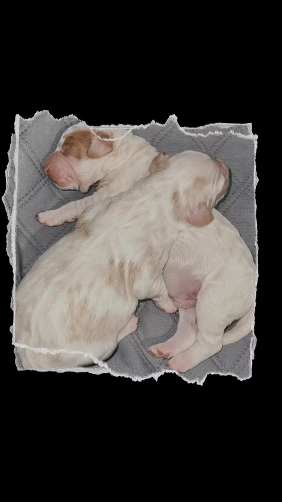Precious boys 🥺 we are soaking in the puppy snuggles over here and loving every minute of it! Spanky is the pup on top - he is the larger of the two and has several large apricot patches on his body with a mostly white face. Alfalfa is a smidge smaller than Spanky, and he has smaller dark red spots on his sides, face, and ears (just like his daddy!). Not sure about coats or temperaments yet… they are just adorable little potatoes at this stage 😅 Remember to follow us on FB / IG @PorchlightPuppies to stay up to date on all the latest news! ——————————— (“Little Rascals” litter; multigen Golden Cavapoos; DOB 01.04.26)