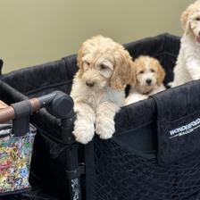 Our Goldendoodle puppies include cream, apricot, red, and merle. Aussiedoodle puppies are black tri-color. Australian Shepherd puppies are black tri-color. Colors will vary depending on the parent dogs.