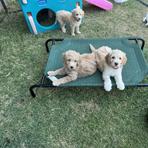 Our Goldendoodle puppies include petite, miniature, medium, and standard sizes. Aussiedoodle puppies are mini size. Sizes will vary depending on the parent dogs.