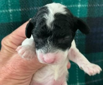 Moby is a very smart and sweet boy. He has championship lines and will be paired with our girl Aggie. Moby is AKC registered, parents are OFA, and he is clear for all genetic diseases. He is 11lbs.