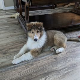 We are not a collie mill. We don't have kennels. Our animals are our family and reside in house with us. The puppies are raised as family and stay in the crate at night. They are loved on daily.