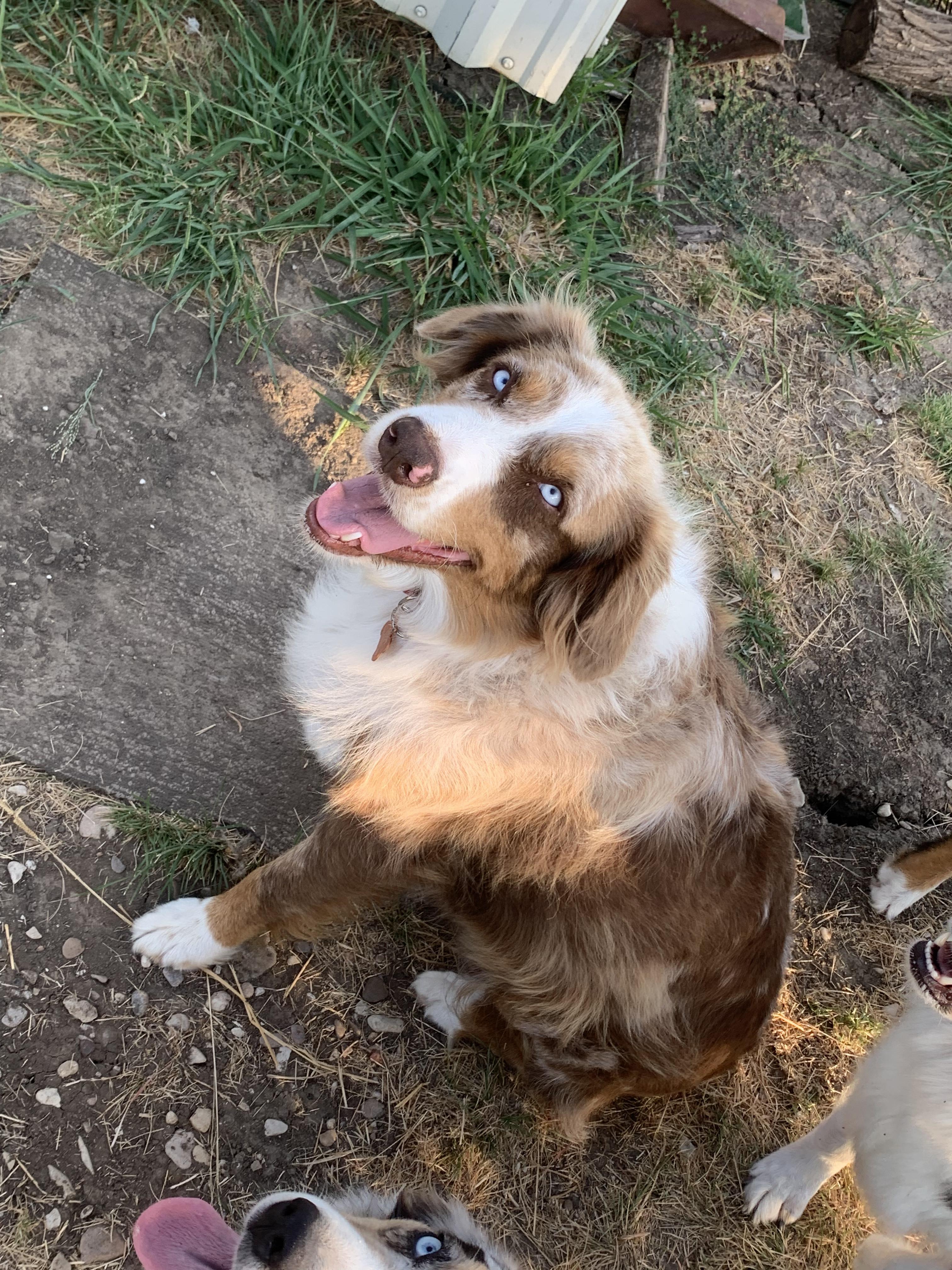 Our Miniature Australian Shepherd puppies include blue merle and black. Australian Shepherd puppies include black, red merle, blue merle, and red. Colors will vary depending on the parent dogs.