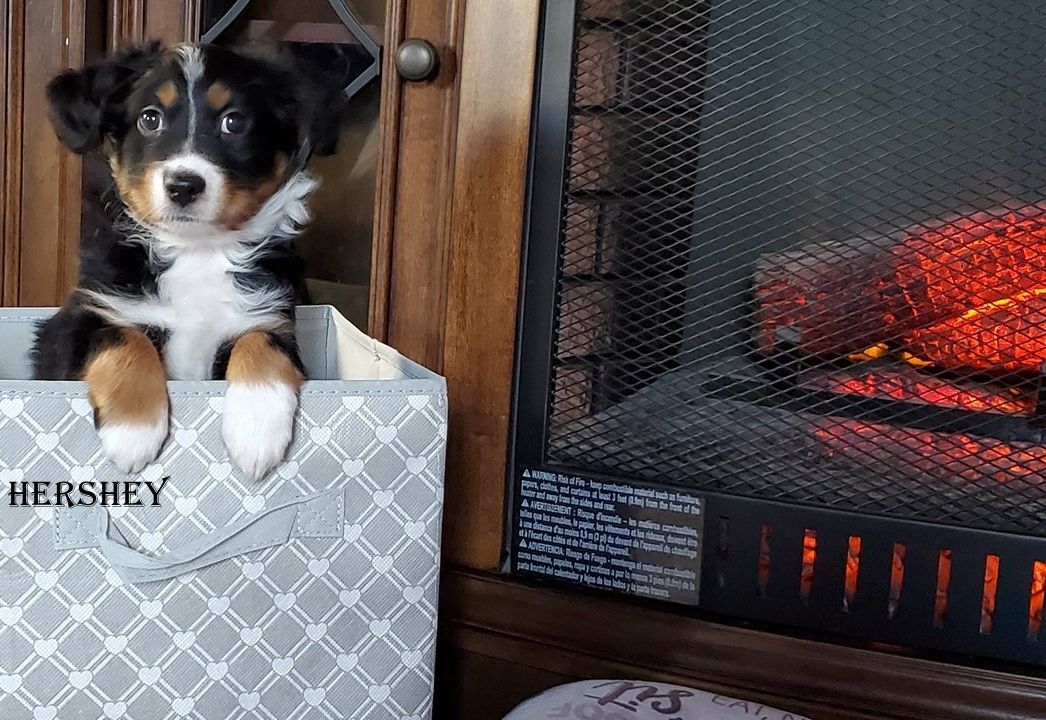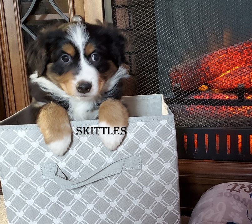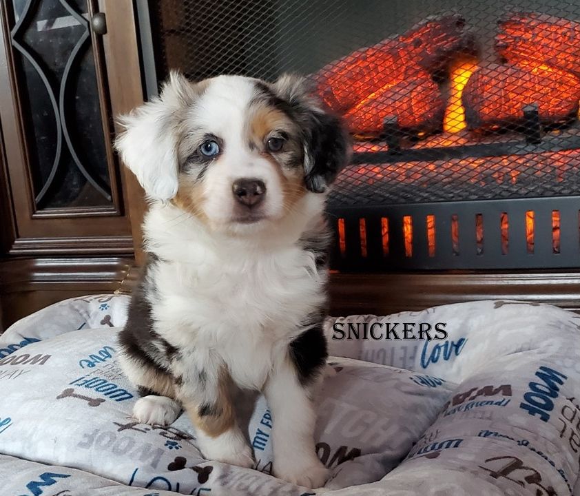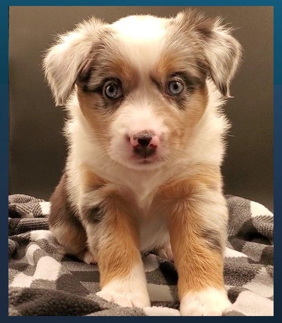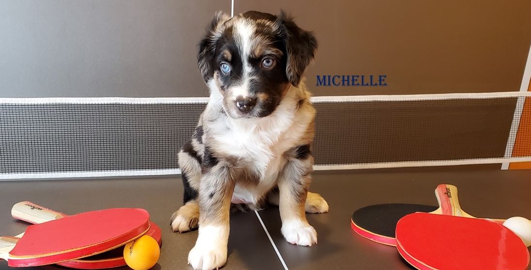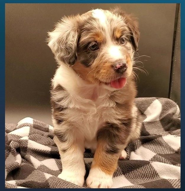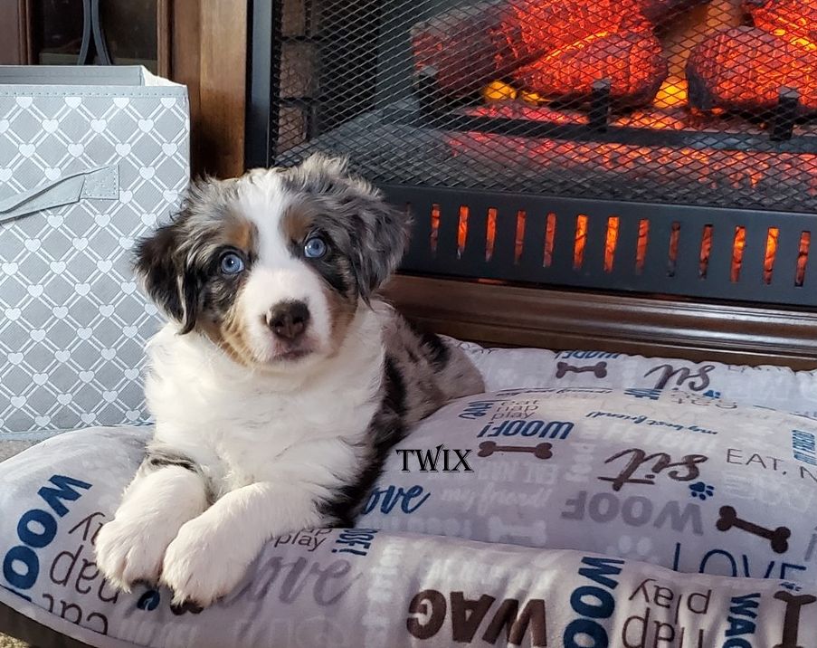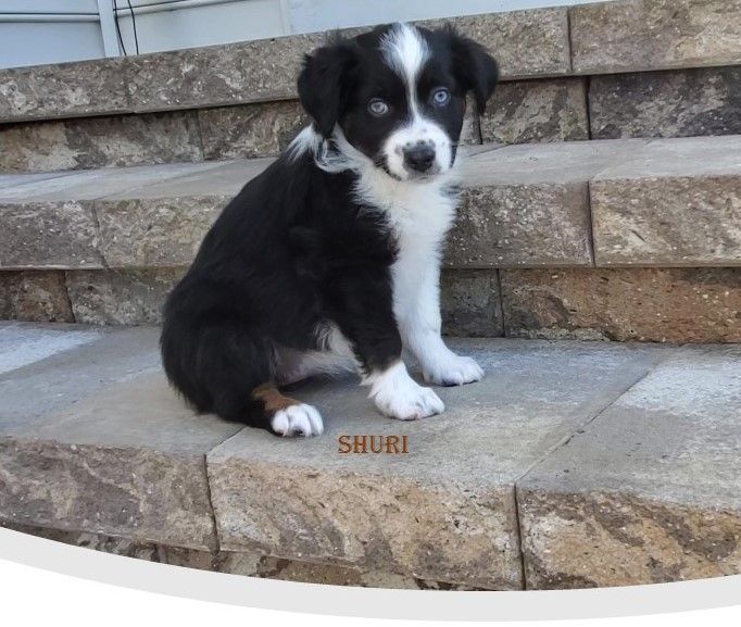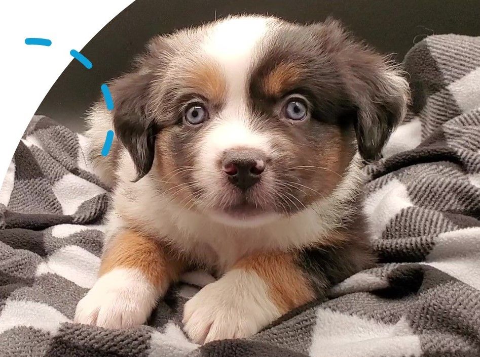 Our Toy Australian Shepherd puppies include black and blue merle. Miniature Australian Shepherd puppies include blue merle and black. Colors will vary depending on the parent dogs.