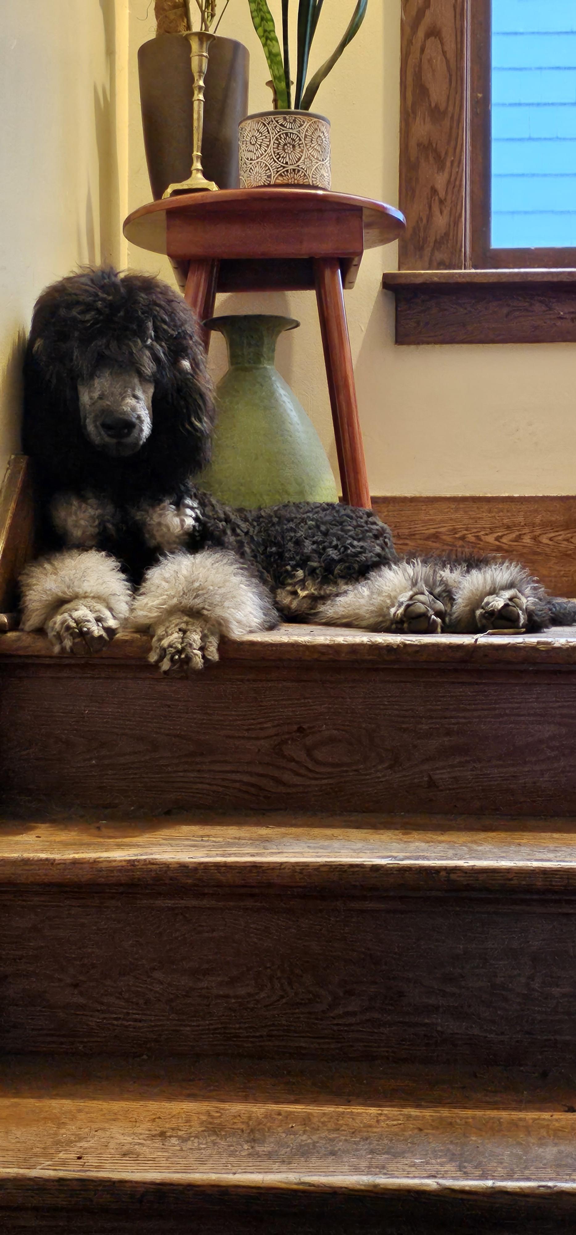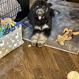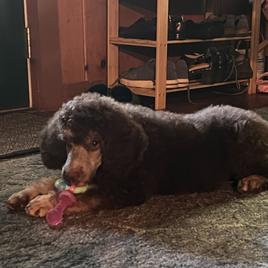 We three humans in the house all feel incredibly lucky to have our dog 🐕‍🦺 Ryker who we got from Powder Puff Poodles. They kindly drove a long way to meet me halfway, and sent me home with a doggy bag to make sure he'd have great start. He was also microchipped in their care, which was a great convenience. Ryker is super smart and super loving. He always wants to be with one of us, but never imposes his presence in an annoying way. When you want calm, he's calm. Ready to play? Play! He's patient and considerate and will gladly lay by your feet until you're ready to pay him attention. You can tell he was reared properly. Also, our groomer was eager to tell me that he was an impressive example of a standard poodle (in terms of looks and structure)! Good stock, good breeding, good early days, and they made a good read on his personality to predict that he'd fit our home and lifestyle. What more can you ask for?