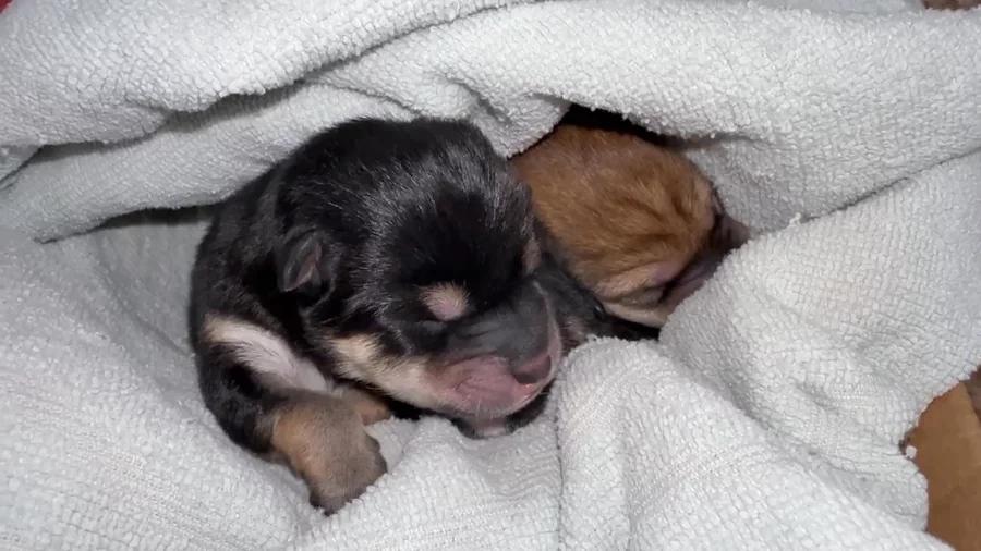 Journey’s puppies, 1 red boy, 1 black and tan boy and1 black and tan girl.