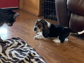 I'm Beth C., the breeder behind Prairie Trail Bssets located in Big Cabin, OK. We cherish each of our dogs and puppies, and we do everything we can to make sure that they get the best lives possible. That includes everything from choosing healthy parents with good temperaments, to proper socialization and daily care, to placing them in loving homes with wonderful families. We strive to provide each of our puppies and their families with a truly positive experience!