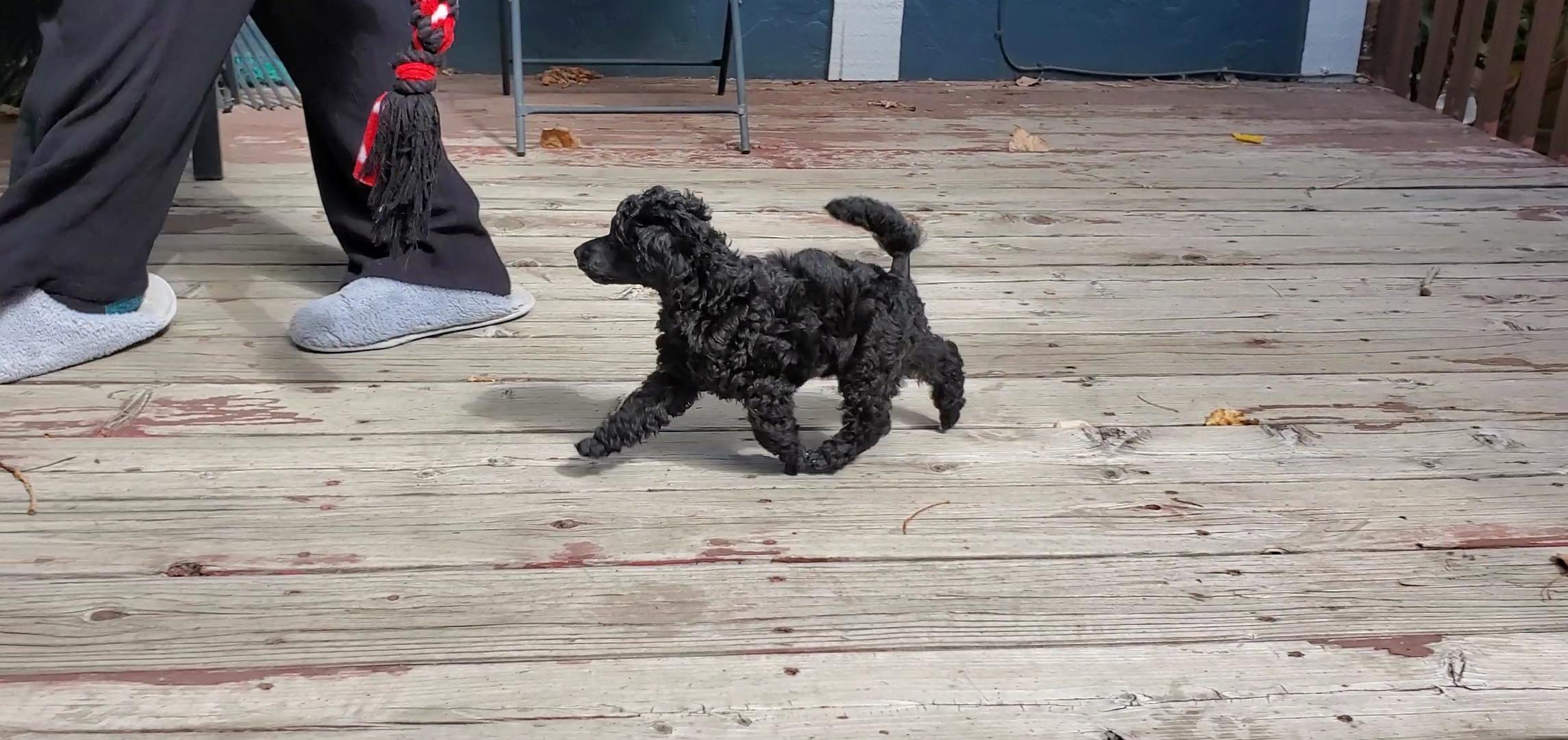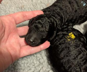 A lovely blue girl who will be a nice light blue. Very bouncy personality. Loves to be silly. She has a very beautiful face and lovely feet. Got her Championship at 7 months old and Grand at 8 months. Also finished the year out as the number 20 miniature poodle for 2021 with minimal showing by her owner/handler.