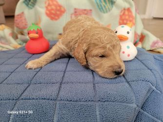 Our Poodle puppies include miniature and moyen sizes. Goldendoodle puppies include miniature and medium sizes. Sizes will vary depending on the parent dogs.