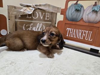 Hannah is a female Dachshund. Carefully selected as a great representative of her breed, Becky decided to make her part of their program. Becky has passed Good Dog’s screening process, which involved a review of their breeding practices, environment, and the mental and physical health of their dogs.