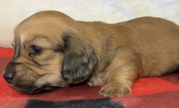 Honey is a female Dachshund. Carefully selected as a great representative of her breed, Becky decided to make her part of their program. Becky has passed Good Dog’s screening process, which involved a review of their breeding practices, environment, and the mental and physical health of their dogs.