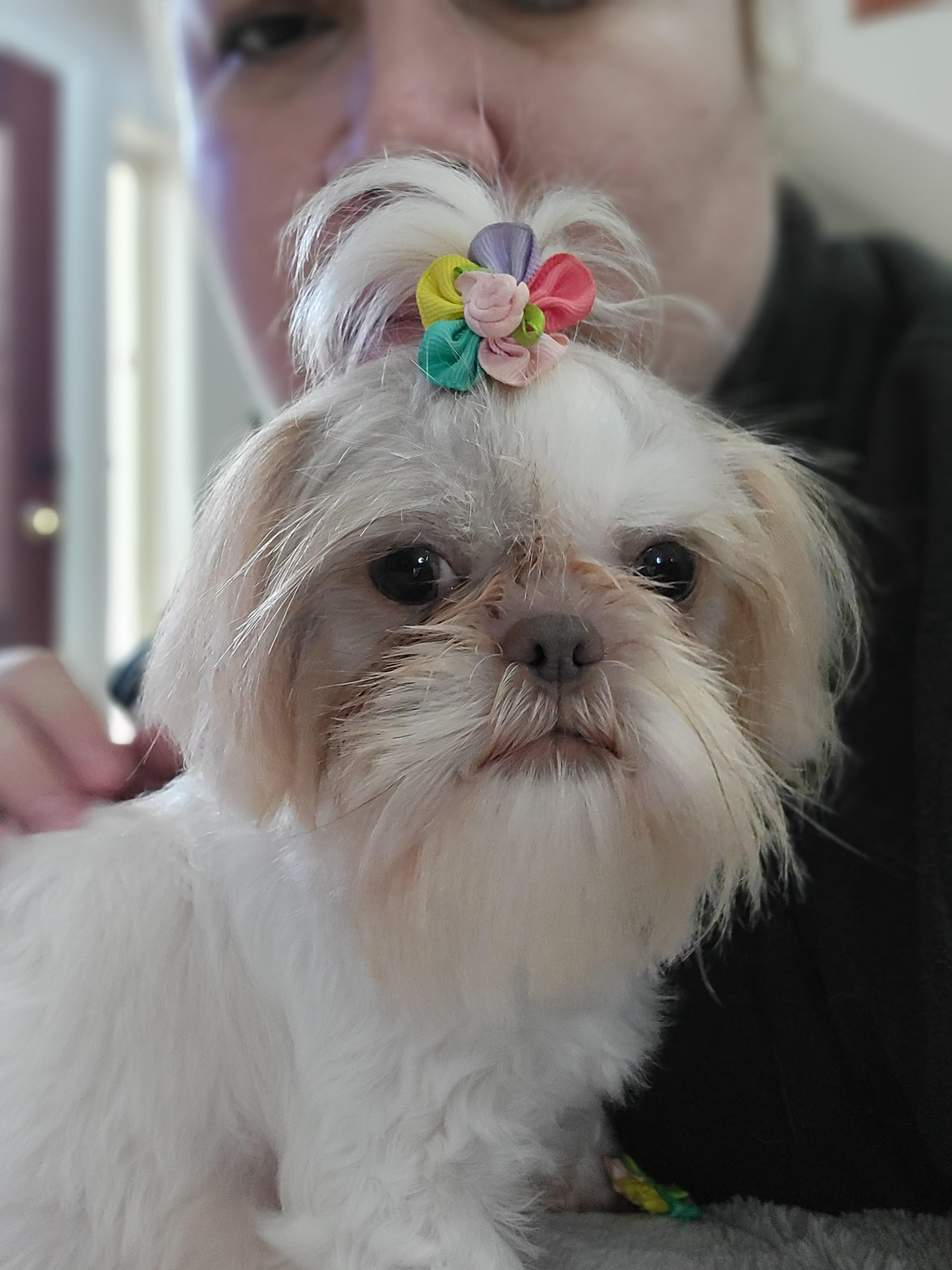 Rosie is a female Shih Tzu. Carefully selected as a great representative of her breed, Ginna decided to make her part of their program. Ginna has passed Good Dog’s screening process, which involved a review of their breeding practices, environment, and the mental and physical health of their dogs.