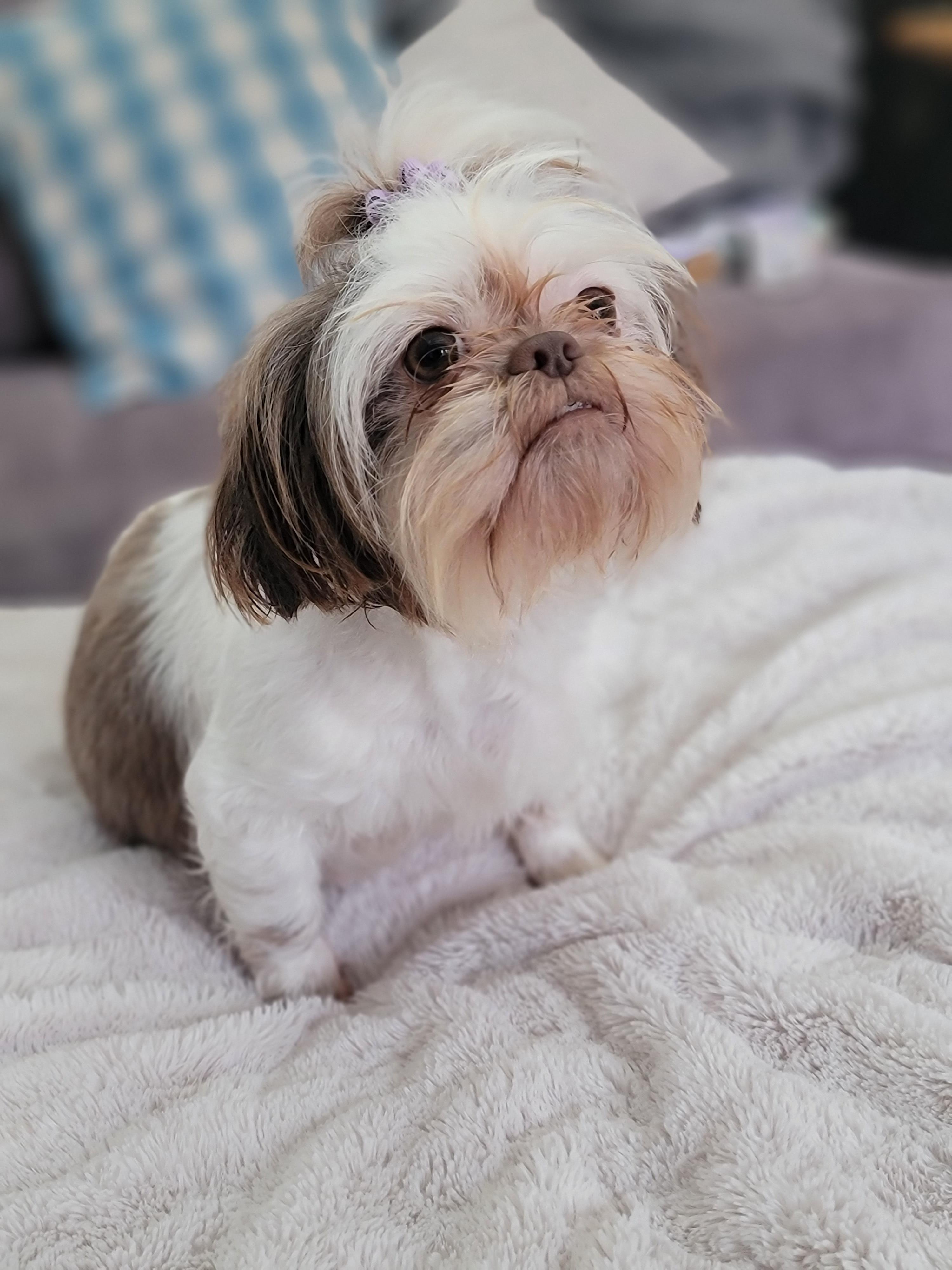 Minnie is a female Shih Tzu. Carefully selected as a great representative of her breed, Ginna decided to make her part of their program. Ginna has passed Good Dog’s screening process, which involved a review of their breeding practices, environment, and the mental and physical health of their dogs.