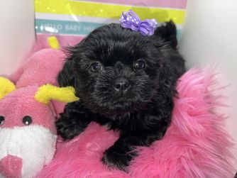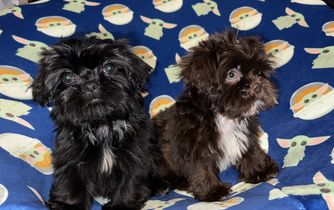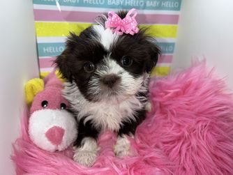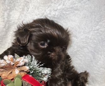 Shih Tzu puppies include black, liver, blue, blue and white, liver and white, and black and white. Colors will vary depending on the parent dogs.