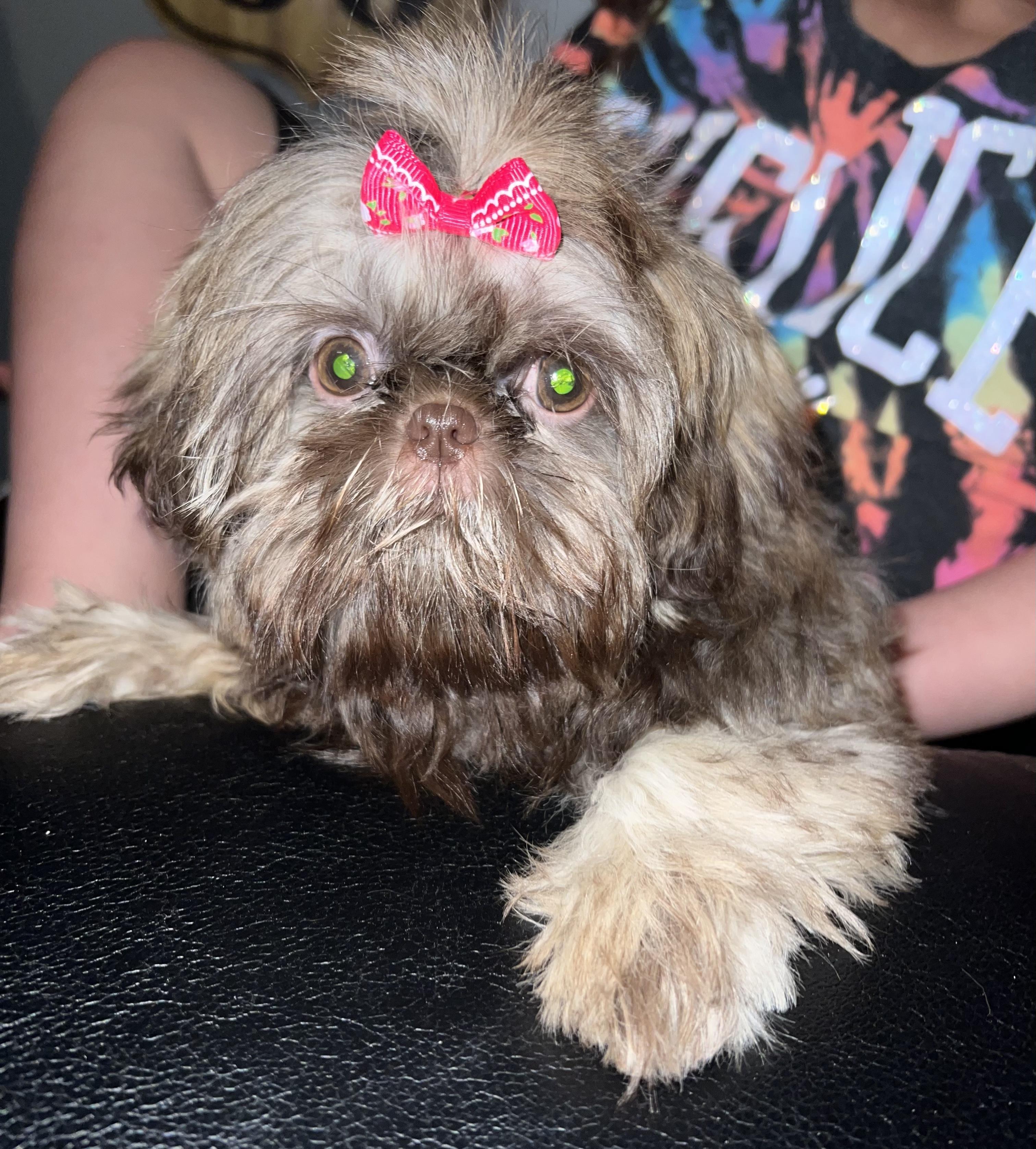 Coco is a female Shih Tzu. Carefully selected as a great representative of her breed, April decided to make her part of their program. April has passed Good Dog’s screening process, which involved a review of their breeding practices, environment, and the mental and physical health of their dogs.