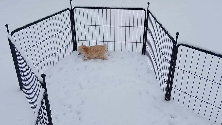 Click on the video to see the whole thing. I was more excited about the snow than Boomer was. 😂 That said, I haven't seen him finish his business so quick! This boy lets me know, with absolute certainty from his crate, that he needs to go outside. I moved him from the large crate to the medium crate and have seen no evidence of pee in the smaller crate. He hasn't pooped in his crate for several days. How exciting! He is ready for his new home.
