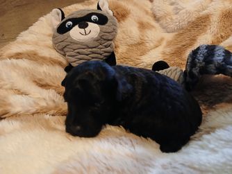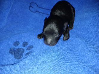 Boomer weighed in at 2.18lb this week. He will probably stay small. He is smart as a whip and LOVES cuddles. 11 weeks old and ready for his new family. Come on out and meet him - you will fall in love! He is the SWEETEST boy. He alerts from his crate to go potty - doesn't like a mess in his crate. He has his first booster, tested negative for parvo, dewclaws removed, tail docked. I will send his vet documents, AKC papers, 1 year genetic replacement guarantee and the potty schedule home with the pup. I send a toy, blanket and some food home with my puppies.