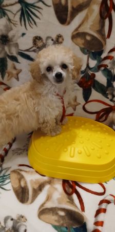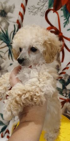 Beaux is a super-friendly little guy that loves everyone he meets. He loves his little "ladies" and chasing bunnies through the yard. He's a good boy on the grooming table and enjoys being a couch potato on his days off. Beaux is about 10 inches tall and weighs about 6lb. His beautiful cream color is quite eye-catching. He has been health tested through Embark and has a good health panel.