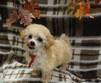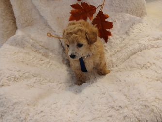 Boomer is an absolute cuddlebug. If you're looking for a small buddy that adores cuddles, this is your guy. He is on a potty schedule; goes potty outside. He has been exposed to the aspects of grooming. Boomer has been vet checked, tested negative for parvo and has his first booster. I will send the potty schedule, vet documents and training tips I have used with these puppies. Also, AKC papers, some food, a toy, a blanket will accompany the pup to his new home. I also have a 1 year genetic replacement guarantee that comes with the puppy.