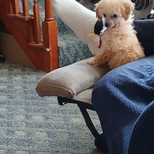 Dolly is a sweet, little dog that loves everyone she meets, big or small. She is always excited when people come to visit. She's a little, black/white girl that is quite fetching. Everyone loves her. Dolly is a good girl on the grooming table even if it isn't her favorite activity. She spends most of her days napping with my husband in his chair. She is truly a velcro dog and will surely pass that on to her offspring. She has been health tested through Embark. Dolly is also a true Toy Poodle, 10" at the shoulder.