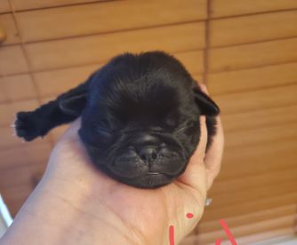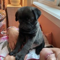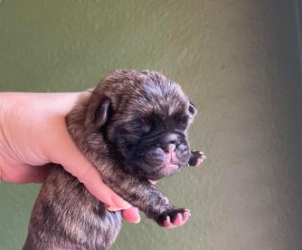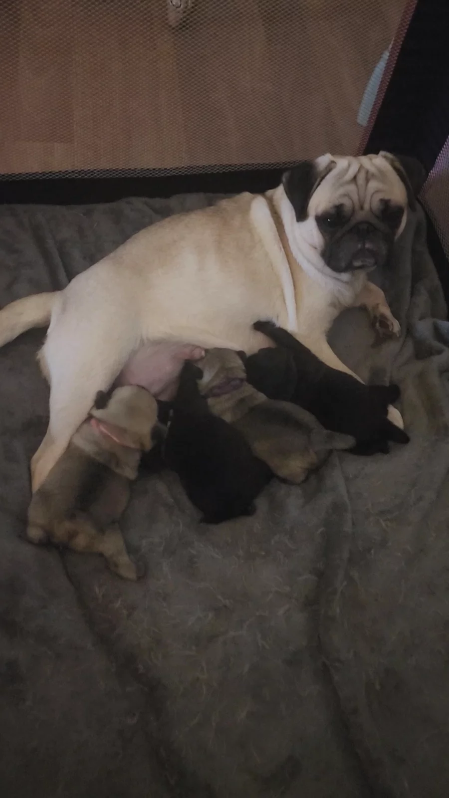 Rayna is a female Pug. Carefully selected as a great representative of her breed, Dawn decided to make her part of their program. Dawn has passed Good Dog’s screening process, which involved a review of their breeding practices, environment, and the mental and physical health of their dogs.