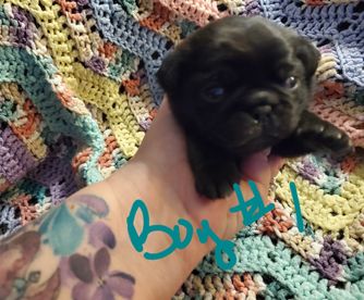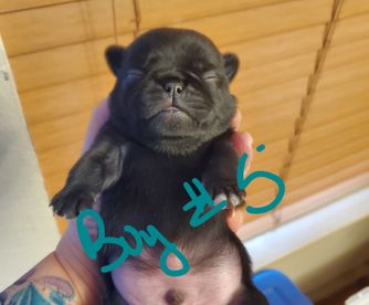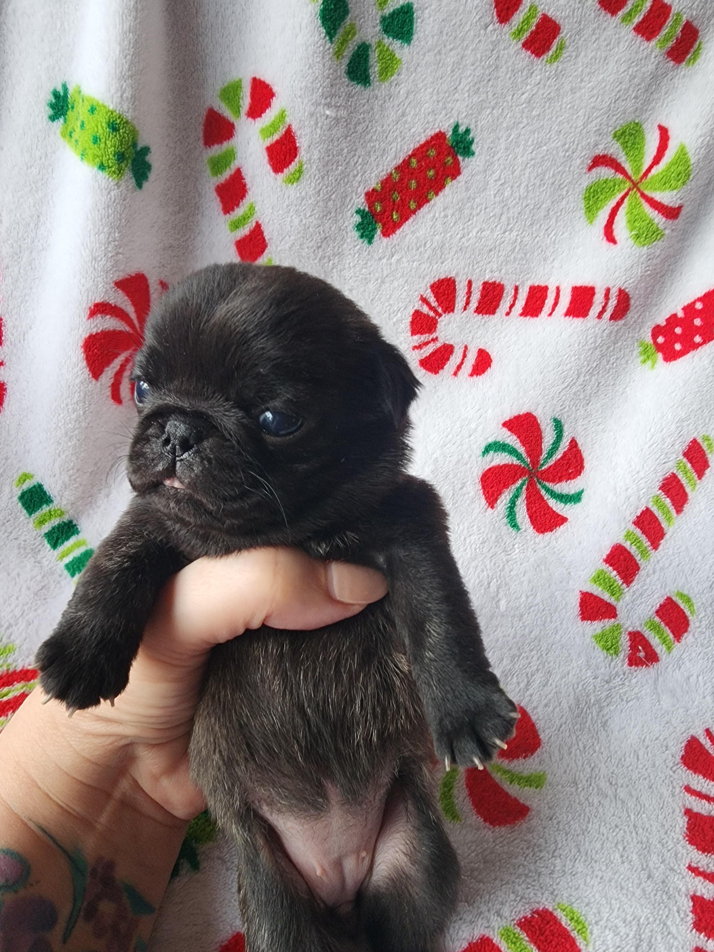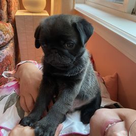 Ember is a female Pug (Non-standard). Carefully selected as a great representative of her breed, Dawn decided to make her part of their program. Dawn has passed Good Dog’s screening process, which involved a review of their breeding practices, environment, and the mental and physical health of their dogs.