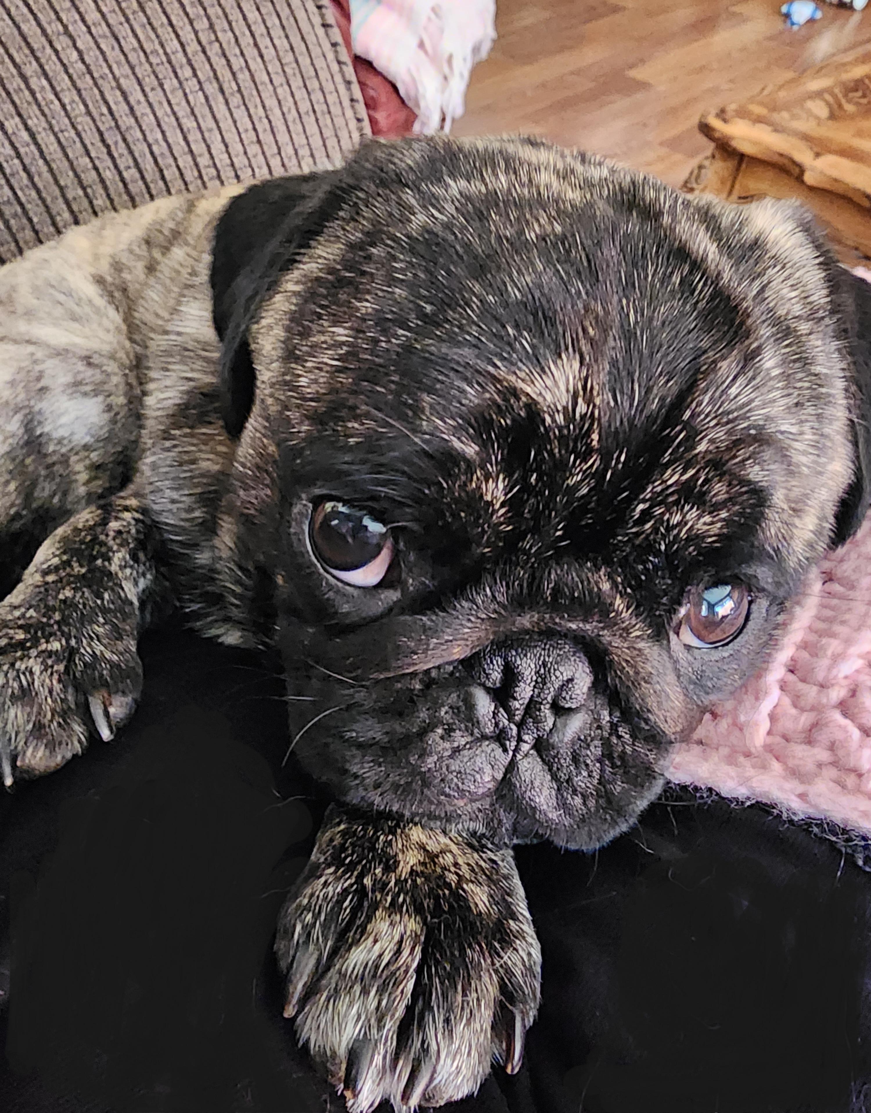 Jasper is a male Pug over 4 years old. Carefully selected as a great representative of his breed, Dawn decided to make him part of their program. Dawn has passed Good Dog’s screening process, which involved a review of their breeding practices, environment, and the mental and physical health of their dogs.
