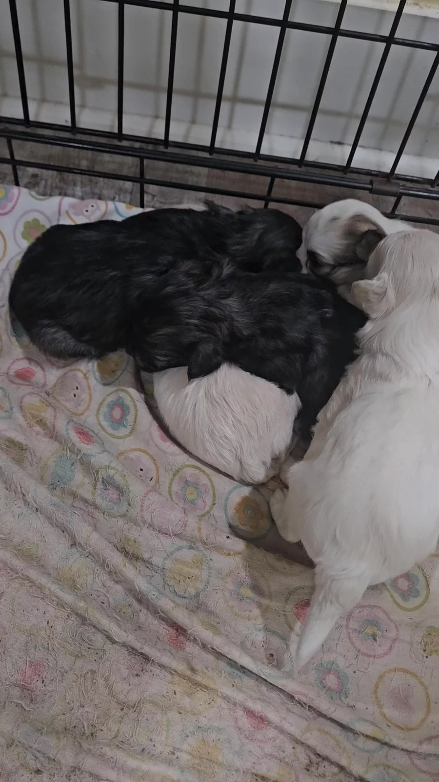 "You will receive a puppy package. Puppies will be vacdonated. Age appropriate they go home with a small bag of food. He is also puppy pad trained. Deposit would be at least 100.00."
