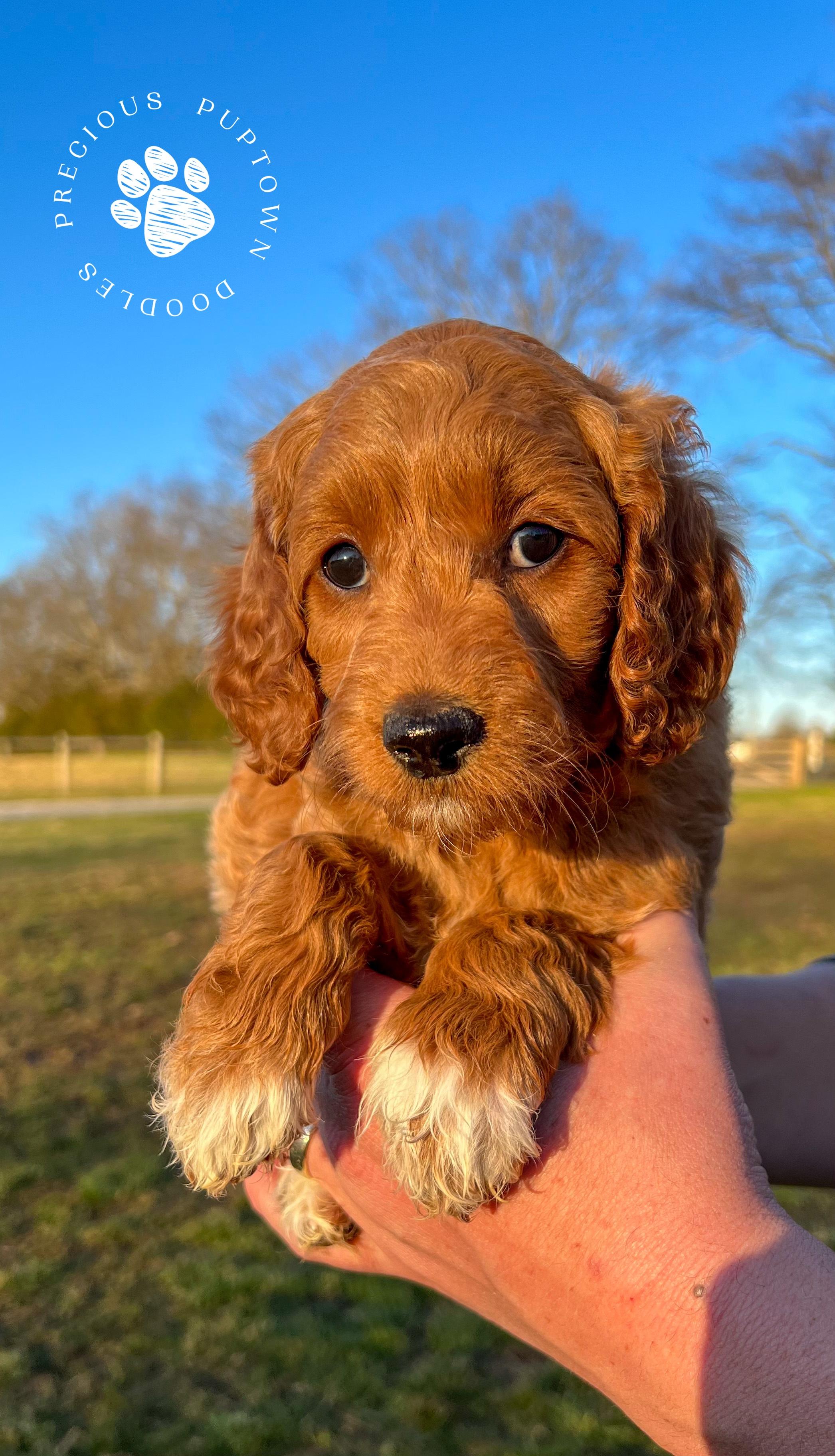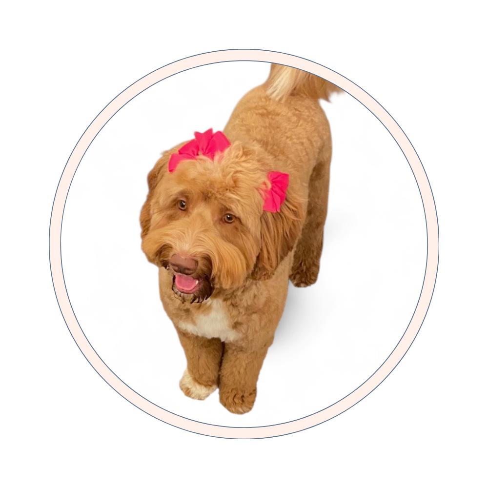 Luna is our precious Petite Multigenerational Goldendoodle with stellar genetics. She has matured to right at 21 pounds. Luna has a beautiful, red abstract wavy coat. She is a PPD original, and was held back from Darcy and Tucker's litter. She is affectionate, athletic, intelligent, and very human focused. Luna lives a very spoiled life with her Guardian Family here in Middle TN.
