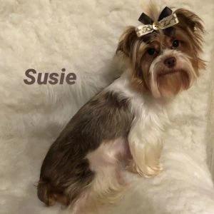 Susie is a female Yorkshire Terrier almost 7 years old. Carefully selected as a great representative of her breed, Alicia decided to make her part of their program. Alicia has passed Good Dog’s screening process, which involved a review of their breeding practices, environment, and the mental and physical health of their dogs.