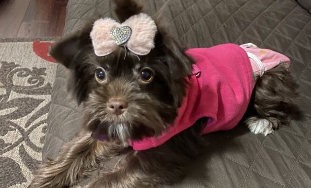 London, our Chocolate and Tan Merle Yorkie is a very active girl. She loves being all over us resting on our lap. Attention is her goal and will strut her way around you as if showing her beautiful colors!