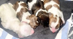 Our puppies include piebald, cream, red, chocolate, black and tan, black and cream, chocolate and cream, and dapple. Colors will vary depending on the parent dogs.