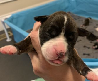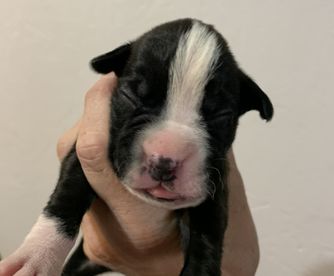 Our puppies are brindle. Colors will vary depending on the parent dogs.