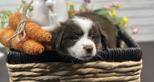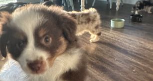 Our puppies include red tri-color and blue merle. Colors will vary depending on the parent dogs.