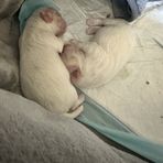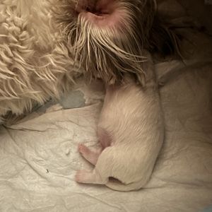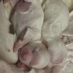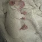 All three puppies are doing great and mama puppies getting a little late each day a white boy, a white girl and a brown and white girl which will turn to tan as she gets older.