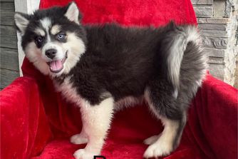 I'm Mackey v., the breeder behind Preskitt Pomskies located in Prescott, AZ. We’re so excited to be able to help families experience the longtime loyalty of welcoming a new puppy into their lives! Our dogs stole our hearts right from the start and we found ourselves wanting to get more involved. Breeding was a natural next step and we haven’t looked back since!