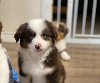 Our Miniature American Shepherd puppies include black, red merle, blue merle, and red. Australian Shepherd puppies include black, red merle, blue merle, and red. Miniature Australian Shepherd puppies include blue merle, black tri, red tri, and red merle. Colors will vary depending on the parent dogs.