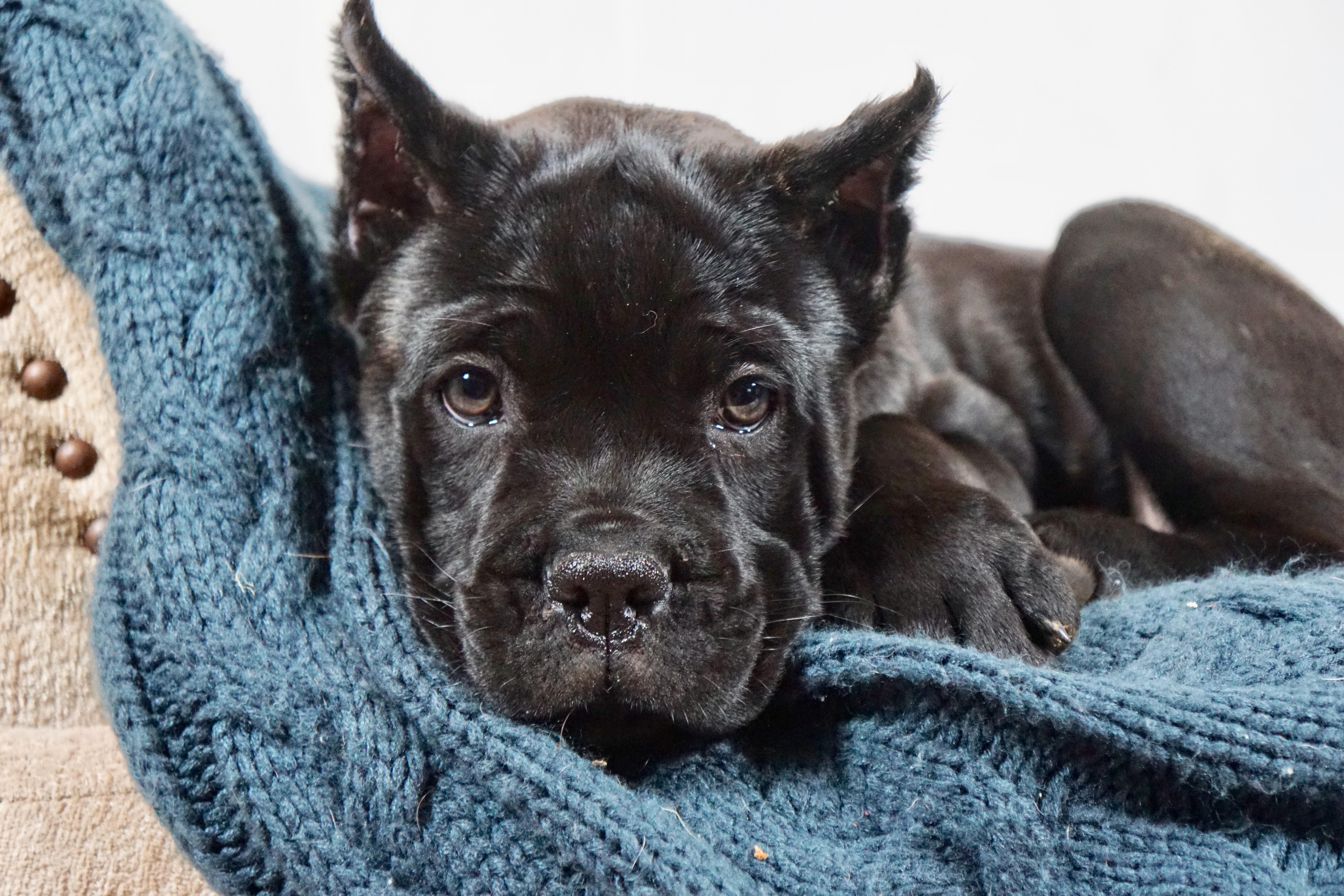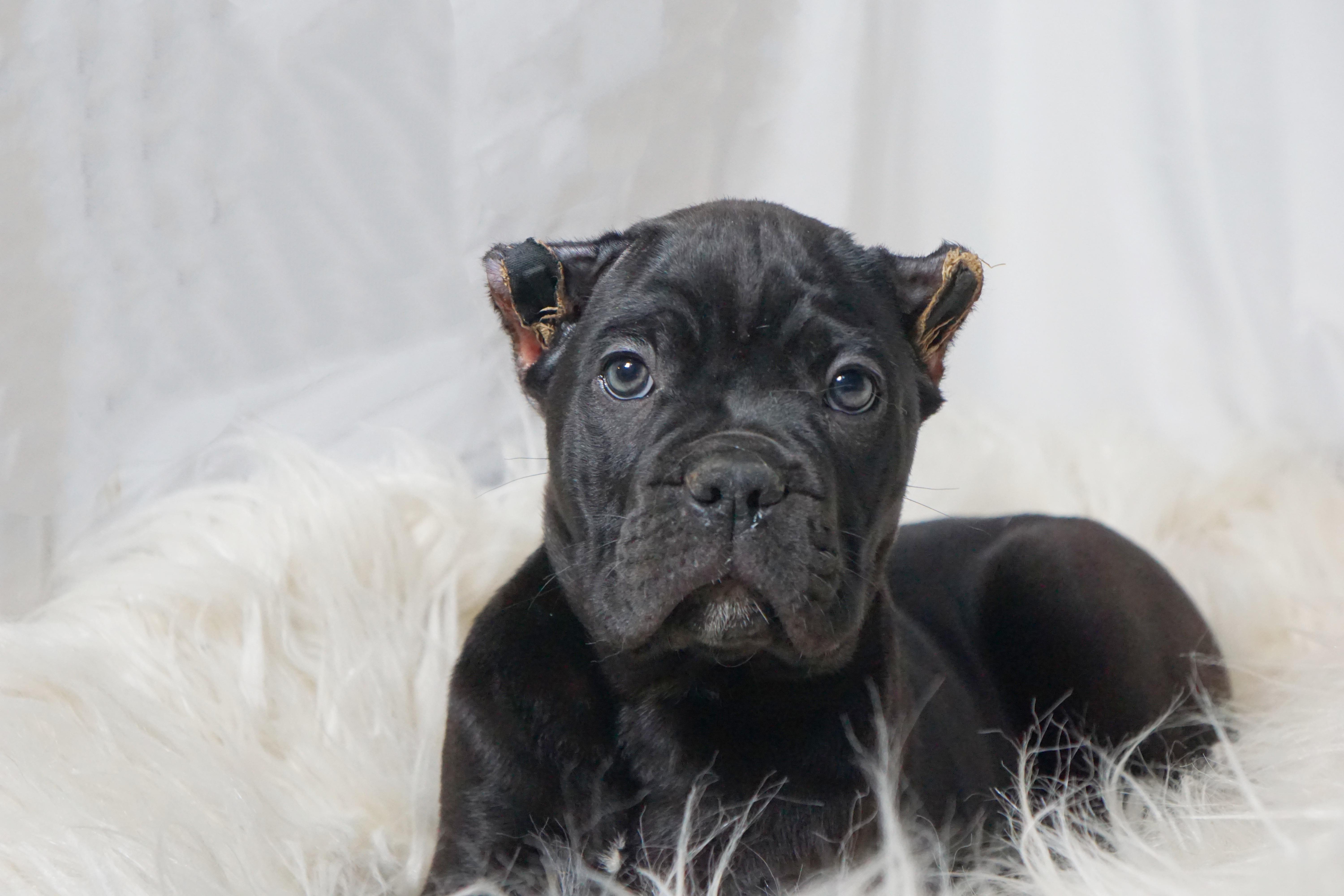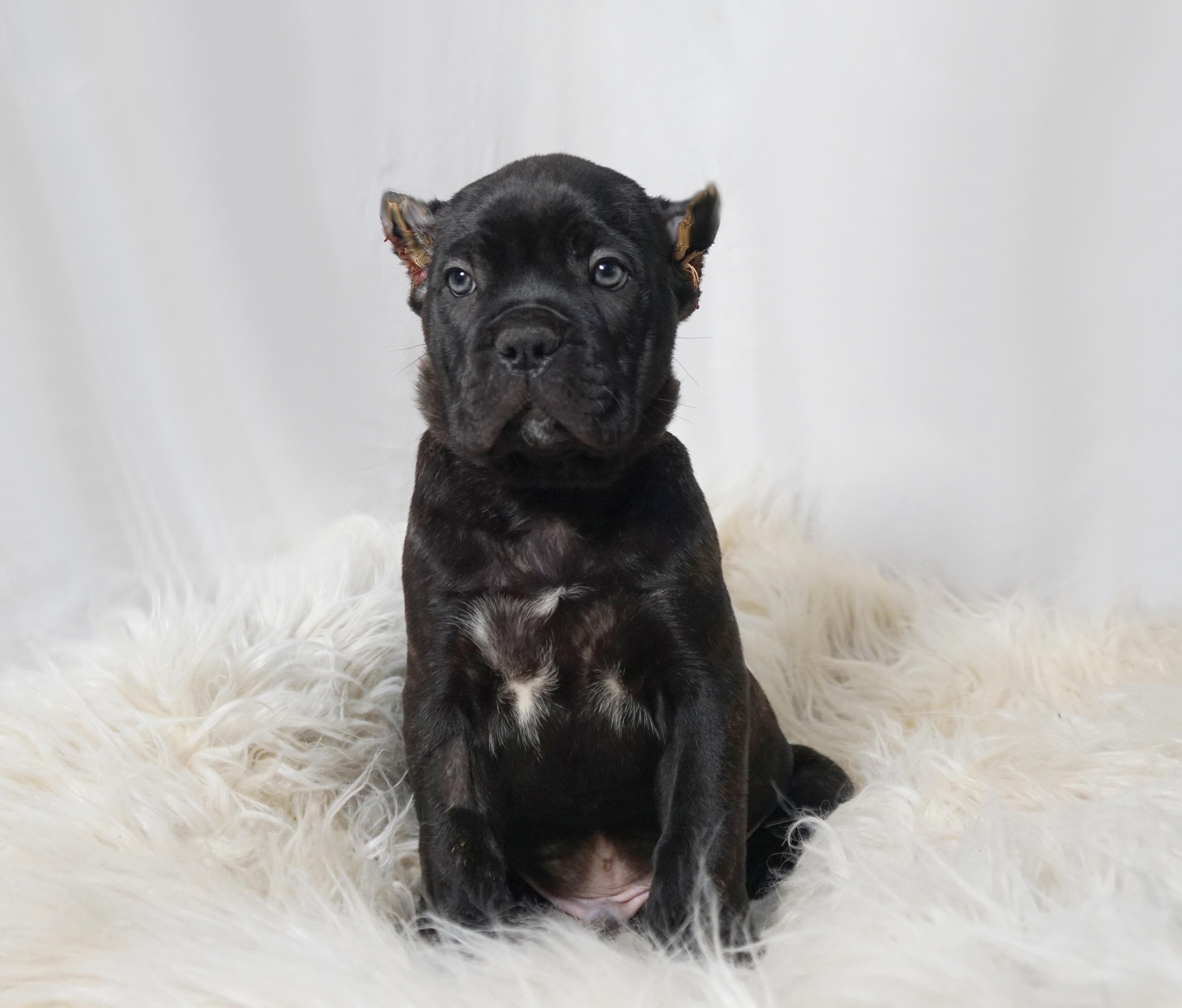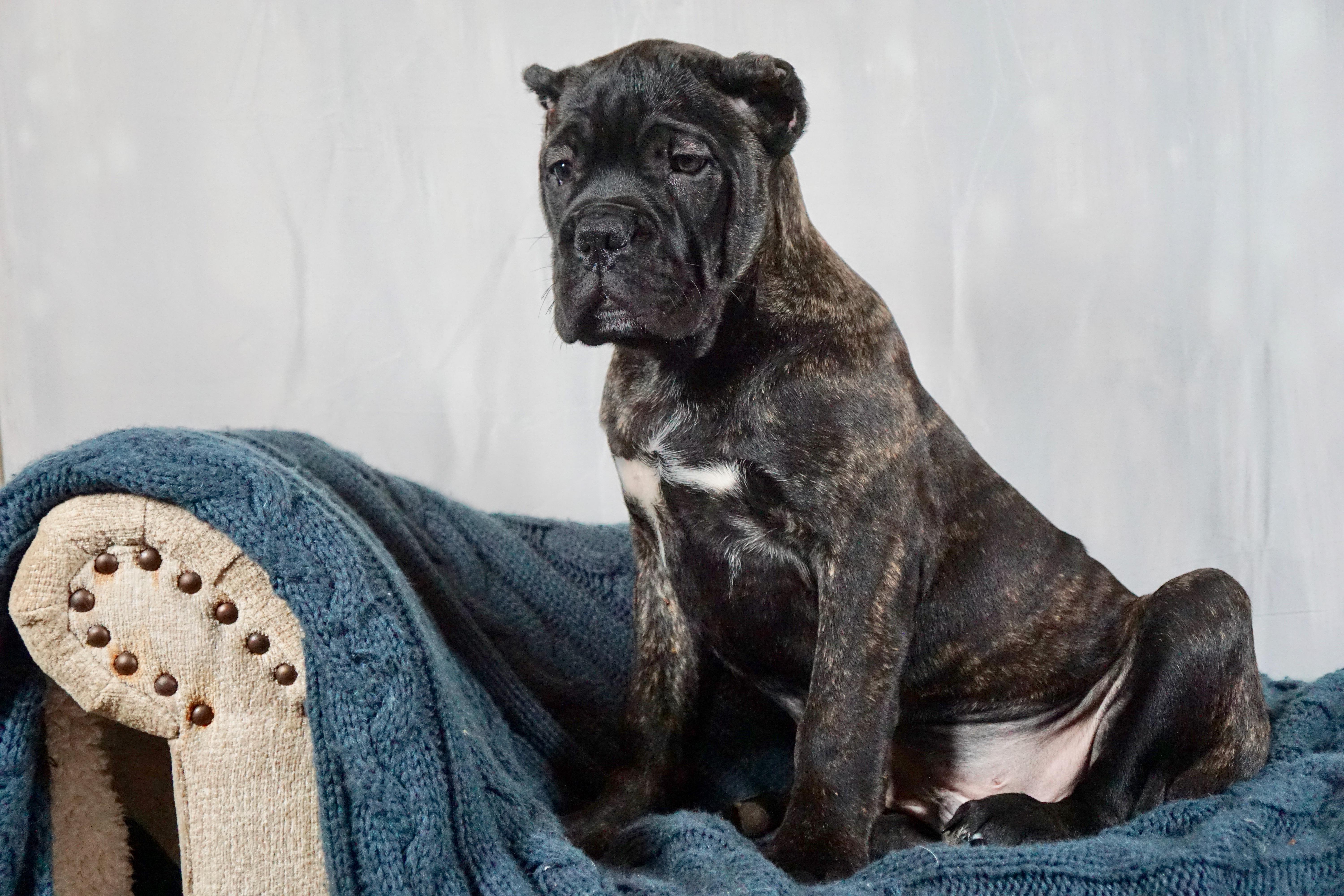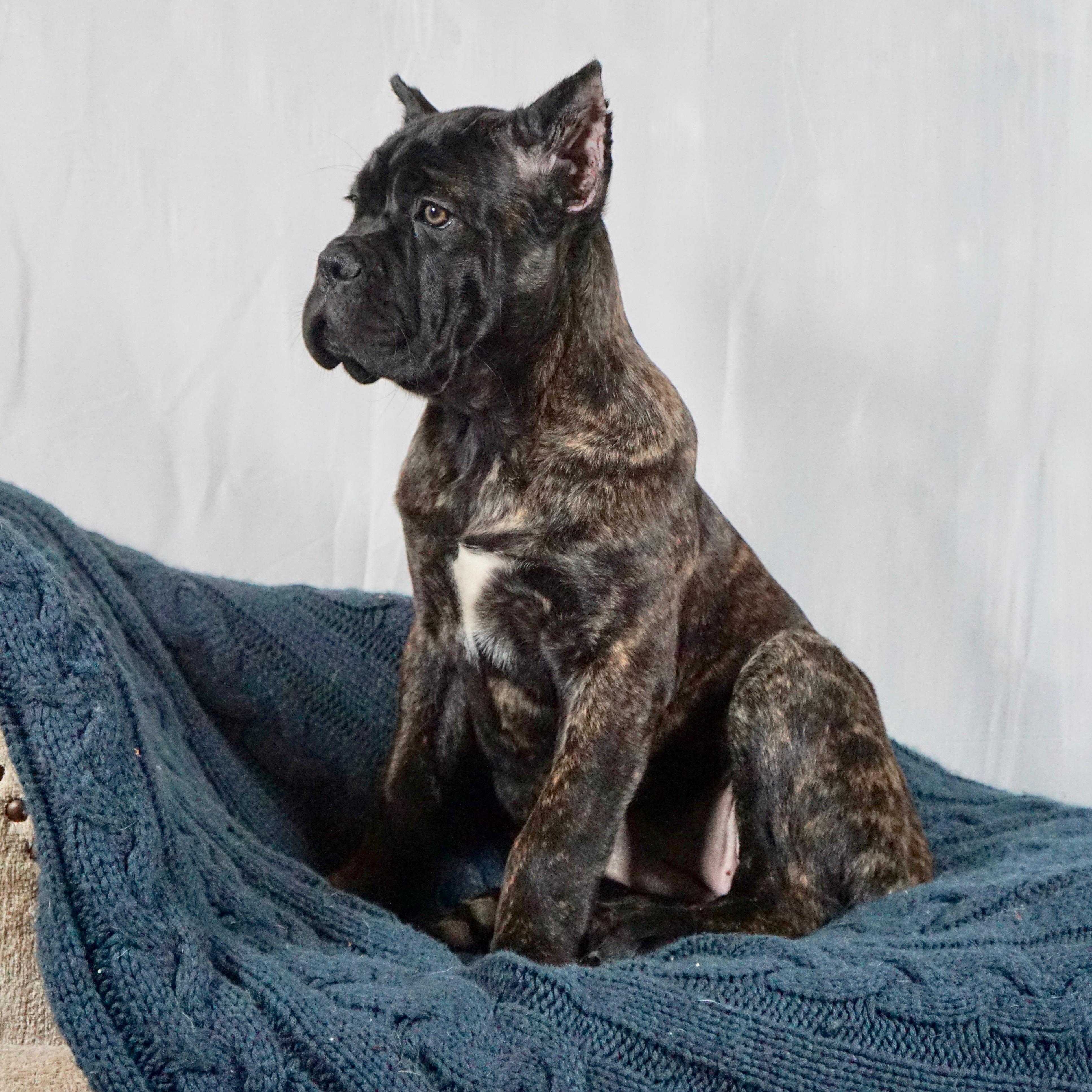 Our Cane Corso puppies include chestnut brindle, black, black brindle, fawn, gray, gray brindle, and red. Colors will vary depending on the parent dogs.