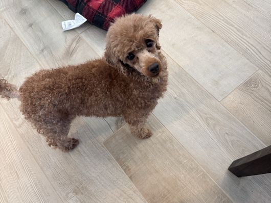 Ember is a female Poodle. Carefully selected as a great representative of her breed, Danielle decided to make her part of their program. Danielle has passed Good Dog’s screening process, which involved a review of their breeding practices, environment, and the mental and physical health of their dogs.