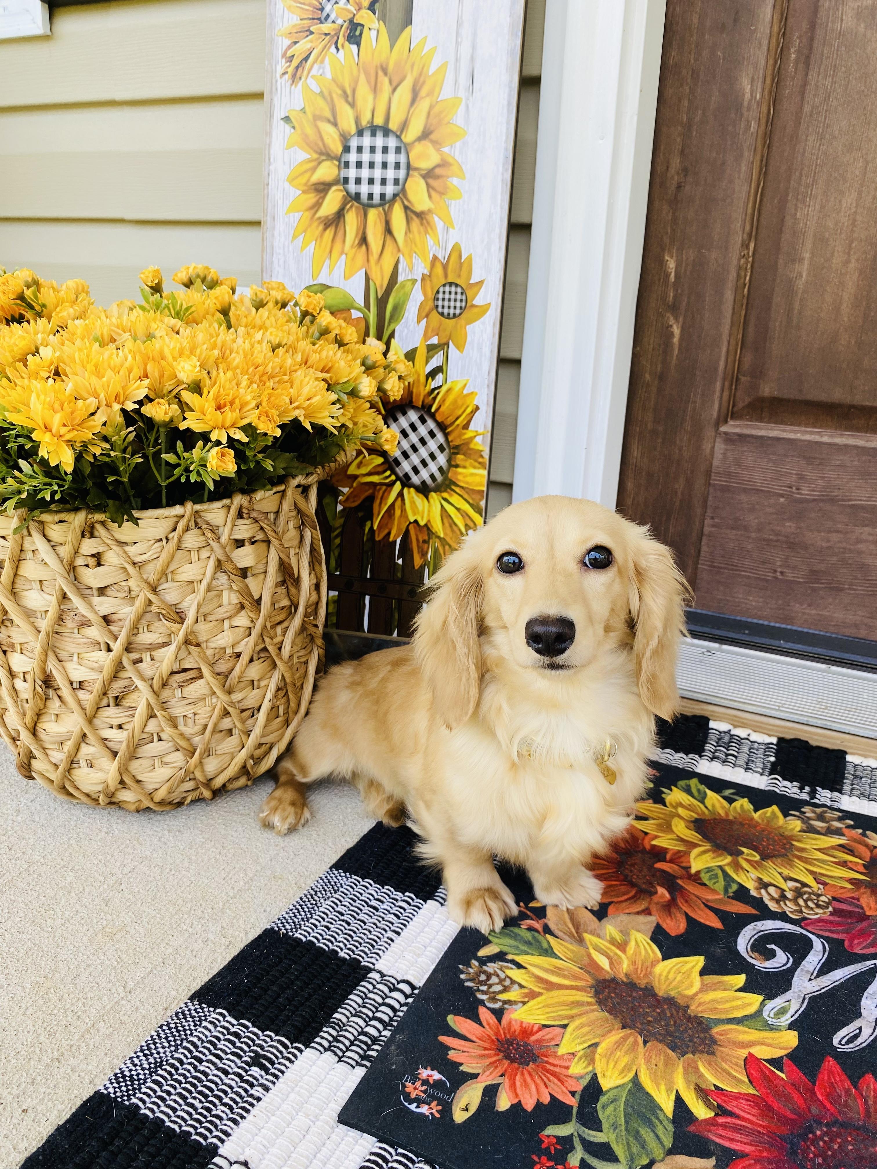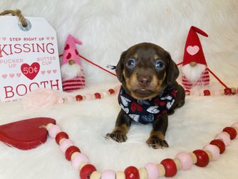 Maggie is a beautiful AKC/CKC dual registered Black and Tan female miniature dachshund. Maggie is loving, energetic, great with kids, and loves to play, most of all she is a sweet girl!