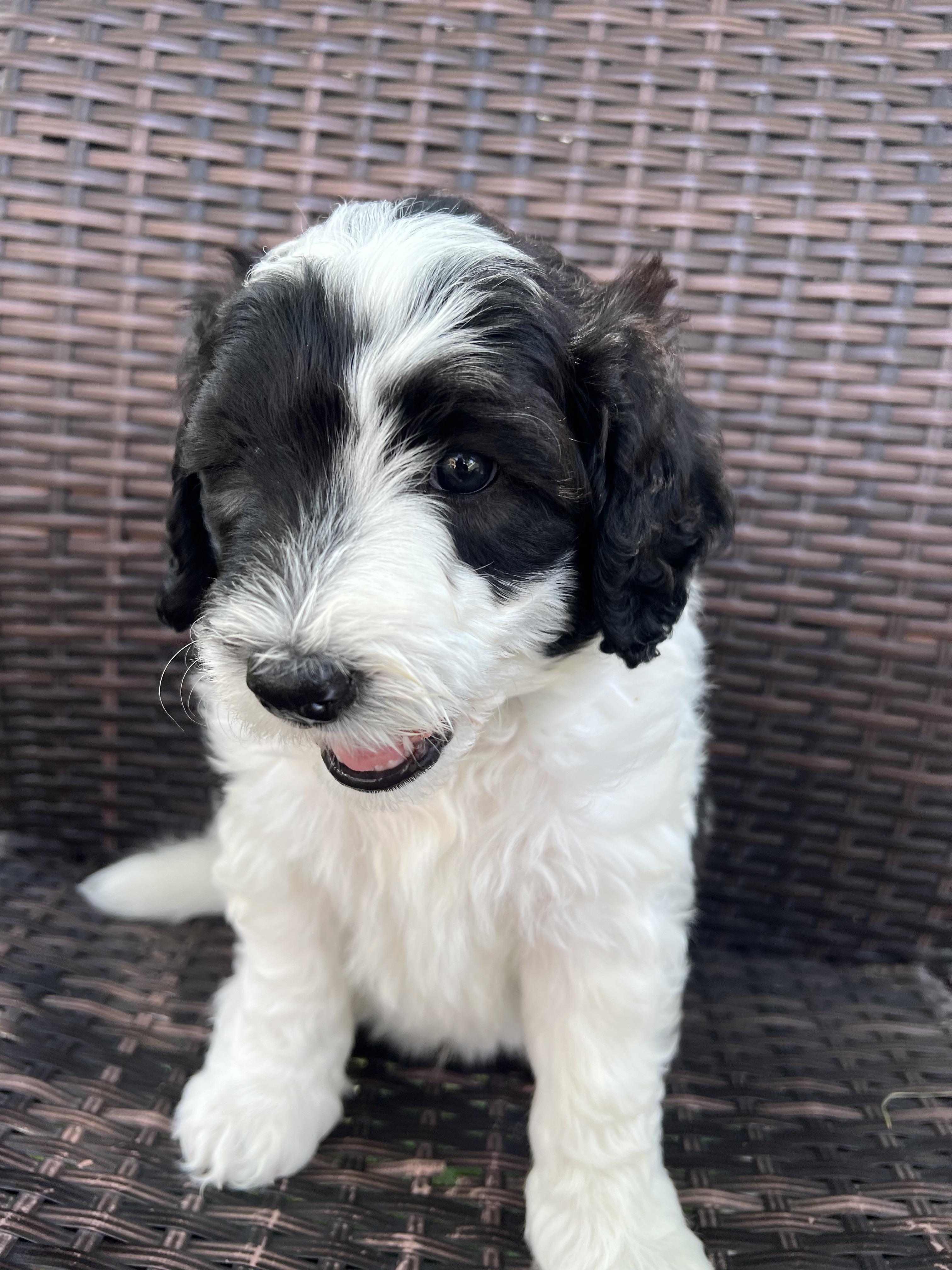 Cowboy is a male Sheepadoodle. Carefully selected as a great representative of his breed, Leah decided to make him part of their program. Leah has passed Good Dog’s screening process, which involved a review of their breeding practices, environment, and the mental and physical health of their dogs.