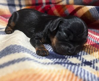 Our puppies are black and tan. Colors will vary depending on the parent dogs.