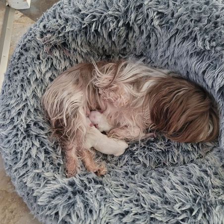Bella is a female Shih Tzu. Carefully selected as a great representative of her breed, Rosalyn decided to make her part of their program. Rosalyn has passed Good Dog’s screening process, which involved a review of their breeding practices, environment, and the mental and physical health of their dogs.