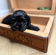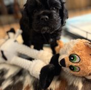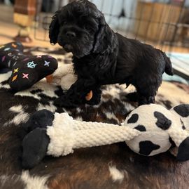 "Baby" is the BEST companion - she loves people, she loves a toy, but she also loves her naps too. She is the perfect mixture of all the wonderful cocker spaniel attributes, and her coloring is absolutely beautiful. She is great with children, and it loyal to her family (gotta love cockers!). Oh and she loves road tips, but they must include a "pup cup" from Starbucks!