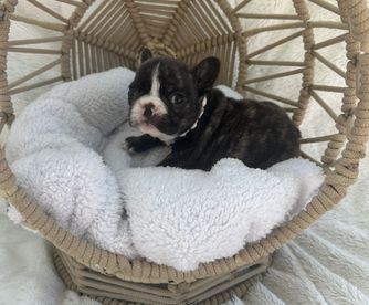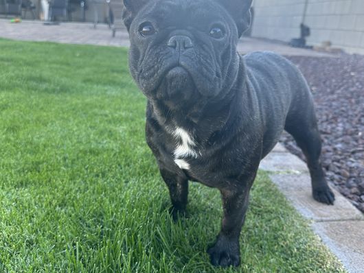 CHICKEN NUGGET is a male French Bulldog. Carefully selected as a great representative of his breed, Sara decided to make him part of their program. Sara has passed Good Dog’s screening process, which involved a review of their breeding practices, environment, and the mental and physical health of their dogs.