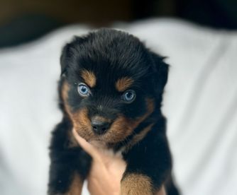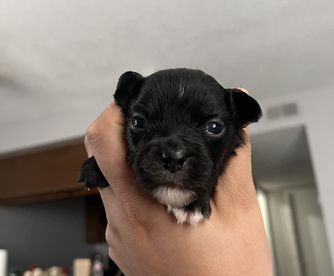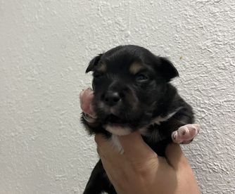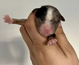 “Our puppies come with tails and dew claws removed, 2 rounds of shots, regular deworming, a microchip, a 1 year health guarantee, and they are raised on Puppy Culture. When they leave they will come with a puppy pack with toys, pads, a leash and collar, a bag of food they're on, registration papers, and a blanket with moms and siblings sent on it. All puppies are sold with limited registration unless approved otherwise.”