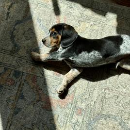 Hank is a male Beagle. Carefully selected as a great representative of his breed, Kaley decided to make him part of their program. Kaley has passed Good Dog’s screening process, which involved a review of their breeding practices, environment, and the mental and physical health of their dogs.