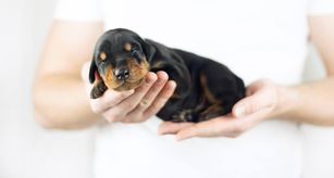 Our puppies include black and rust and red and rust. Colors will vary depending on the parent dogs.